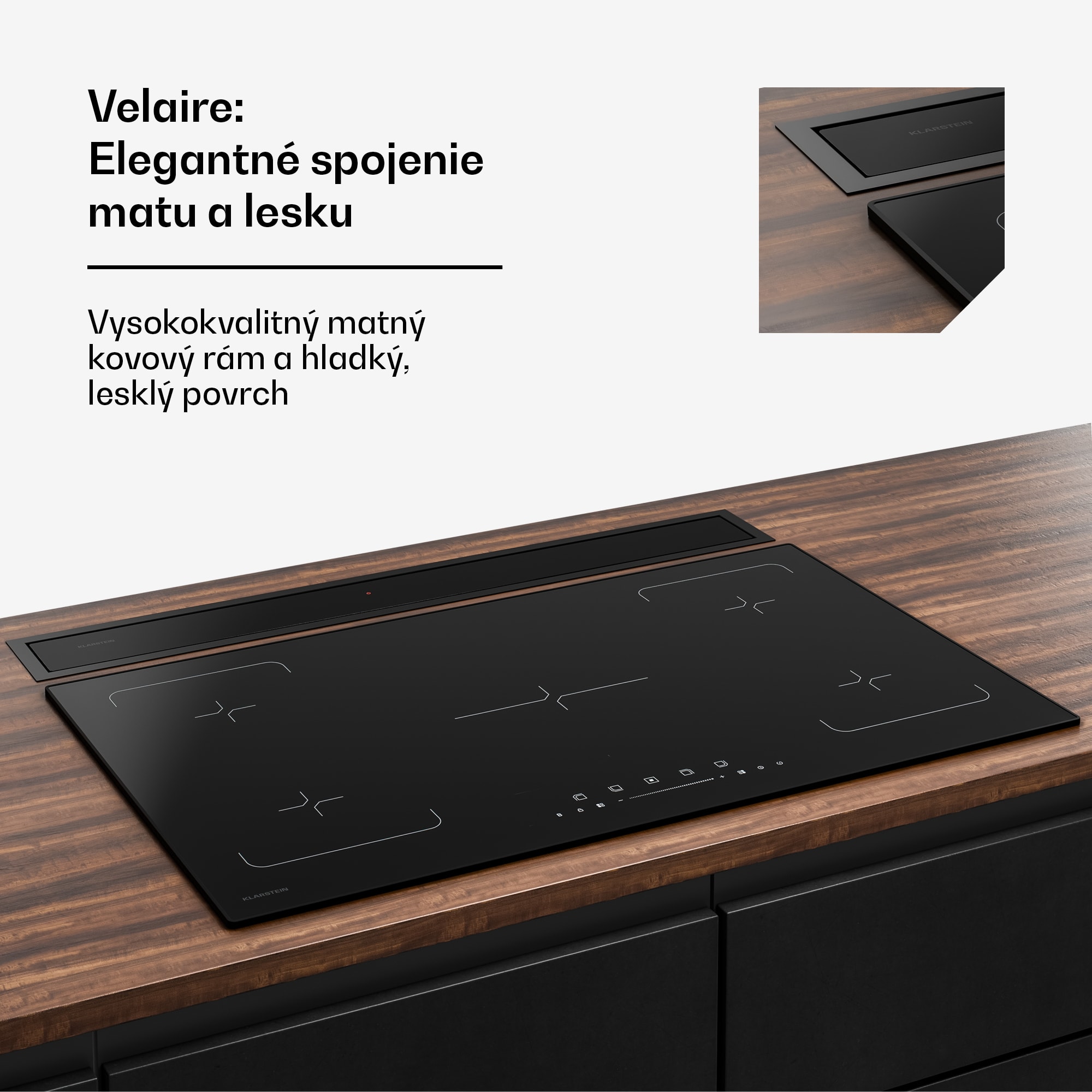 Klarstein Velaire Downdraft-System, Elegantný, minimalistický, výkonný, Energetická trieda A++, 906 m³/h, 90 cm