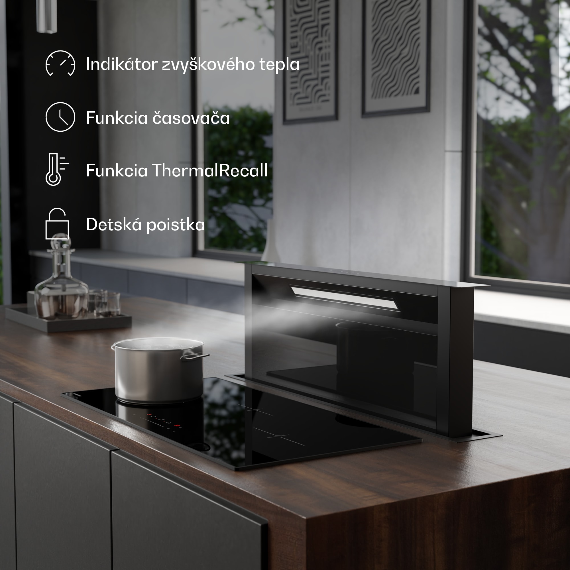 Indukčná varná doska Klarstein Velaire kombinuje minimalistický dizajn s vysokým výkonom a energeticky úspornou technológiou. Vďaka harmonickej kombinácii matných a lesklých povrchov sa bez problémov hodí do moderných priestorov. Ako súčasť dizajnovej série Velaire stelesňuje táto indukčná varná doska minimalizmus, pokoj a čistú geometriu, vďaka čomu sa stáva prirodzeným stredobodom každej kuchyne. Tri výkonné, vysokokvalitné indukčné varné zóny s celkovým výkonom až do 5500 W zaručujú plynulé varenie. Vďaka dotykovému posuvníku sa varná doska ľahko a intuitívne obsluhuje a jej bezpečnú prevádzku zaručuje detská poistka a ukazovateľ zvyškového tepla. Vďaka funkcii ThermoRecall sa indukčná varná doska po prerušení, napríklad v dôsledku integrovaného časovača, automaticky vráti na posledné použité nastavenie teploty. Chceli by ste si zariadiť celú kuchyňu jednotným spôsobom s jednoduchou eleganciou? Objavte všetky naše spotrebiče Velaire a vytvorte si sofistikovaný a harmonický kuchynský zážitok!