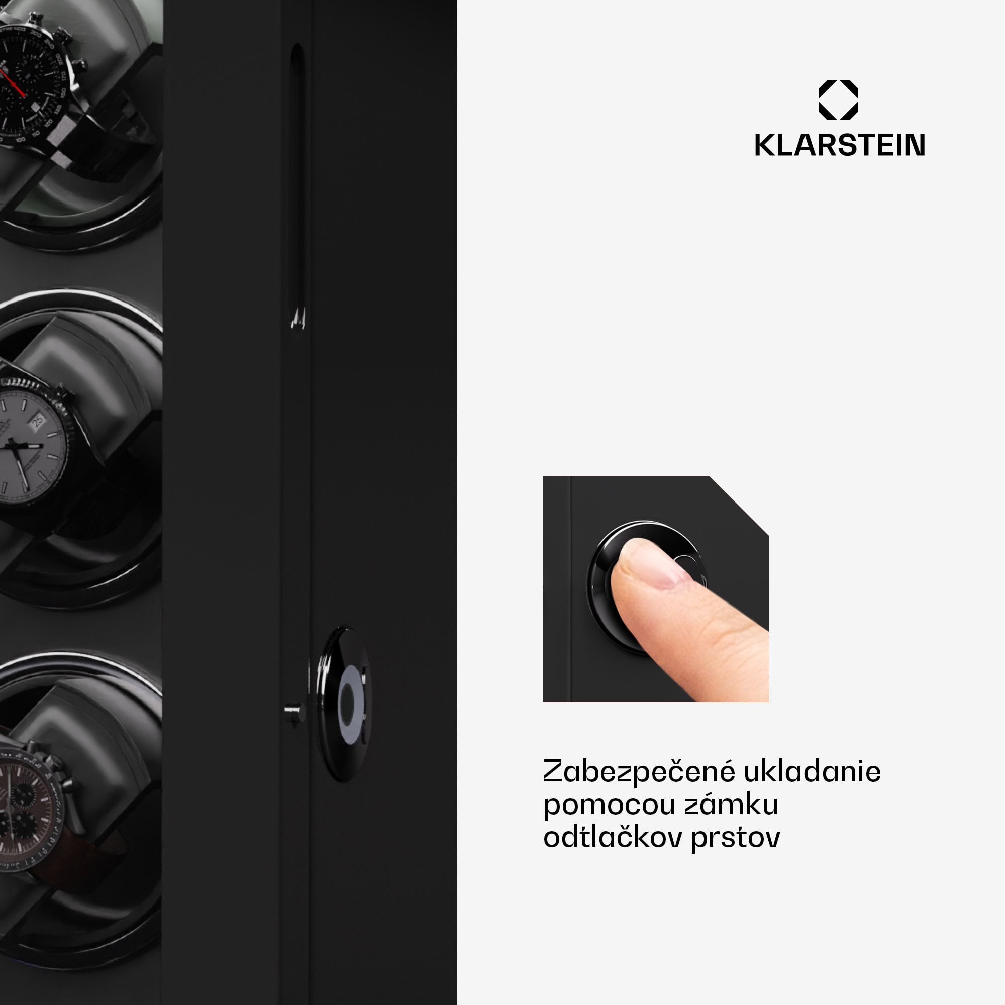 Naťahovač hodiniek a stojan na hodinky Klarstein Verdon 12 kombinuje bezpečné uloženie so štýlovým dizajnom a inovatívnou technológiou. Skriňa z robustnej MDF v kombinácii s elegantným vnútorným vybavením vytvára vkusnú kompozíciu luxusu a elegancie. Vysokolesklý klavírny povrch dodáva naťahovaču Verdon nielen nádherný lesk, ale zároveň z neho robí estetický stredobod každej miestnosti.Medzi špičkové funkcie patria uzamykateľné dvierka s akrylovým okienkom, integrované LED osvetlenie pre umeleckú prezentáciu hodín, tichý chod motora s hlučnosťou menej ako 5 dB a LCD dotykový displej s diaľkovým ovládaním pre maximálne jednoduché používanie. Naťahovač hodiniek ponúka priestor až pre 12 hodiniek a má flexibilné vankúše na hodinky rôznych veľkostí. Naťahovač hodiniek Klarstein Verdon 12 sa zameriava nielen na bezpečné uloženie, ale aj na štýlový vzhľad vašej zbierky. Zámok, ktorý sa otvára len pomocou odtlačku prsta, poskytuje dodatočnú ochranu.