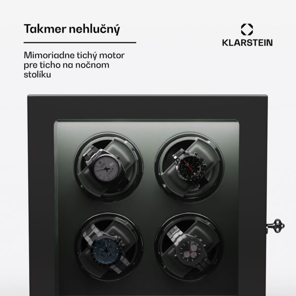 Naťahovač hodiniek a stojan na hodinky Klarstein Verdon 4 kombinuje bezpečné uloženie so štýlovým dizajnom a inovatívnou technológiou. Skriňa z robustnej MDF v kombinácii s elegantným vnútorným vybavením vytvára vkusnú kompozíciu luxusu a elegancie. Vysokolesklý klavírny povrch dodáva naťahovaču Verdon nielen nádherný lesk, ale zároveň z neho robí estetický stredobod každej miestnosti. Medzi špičkové funkcie patria uzamykateľné dvierka s akrylovým okienkom, integrované LED osvetlenie pre umeleckú prezentáciu hodín, tichý chod motora s hlučnosťou menej ako 5 dB a LCD dotykový displej s diaľkovým ovládaním pre maximálne jednoduché používanie. Naťahovač hodiniek ponúka priestor až pre 4 hodinky a má flexibilné vankúše na hodinky rôznych veľkostí. Naťahovač hodiniek Klarstein Verdon 4 sa zameriava nielen na bezpečné uloženie, ale aj na štýlovú prezentáciu vašej zbierky.