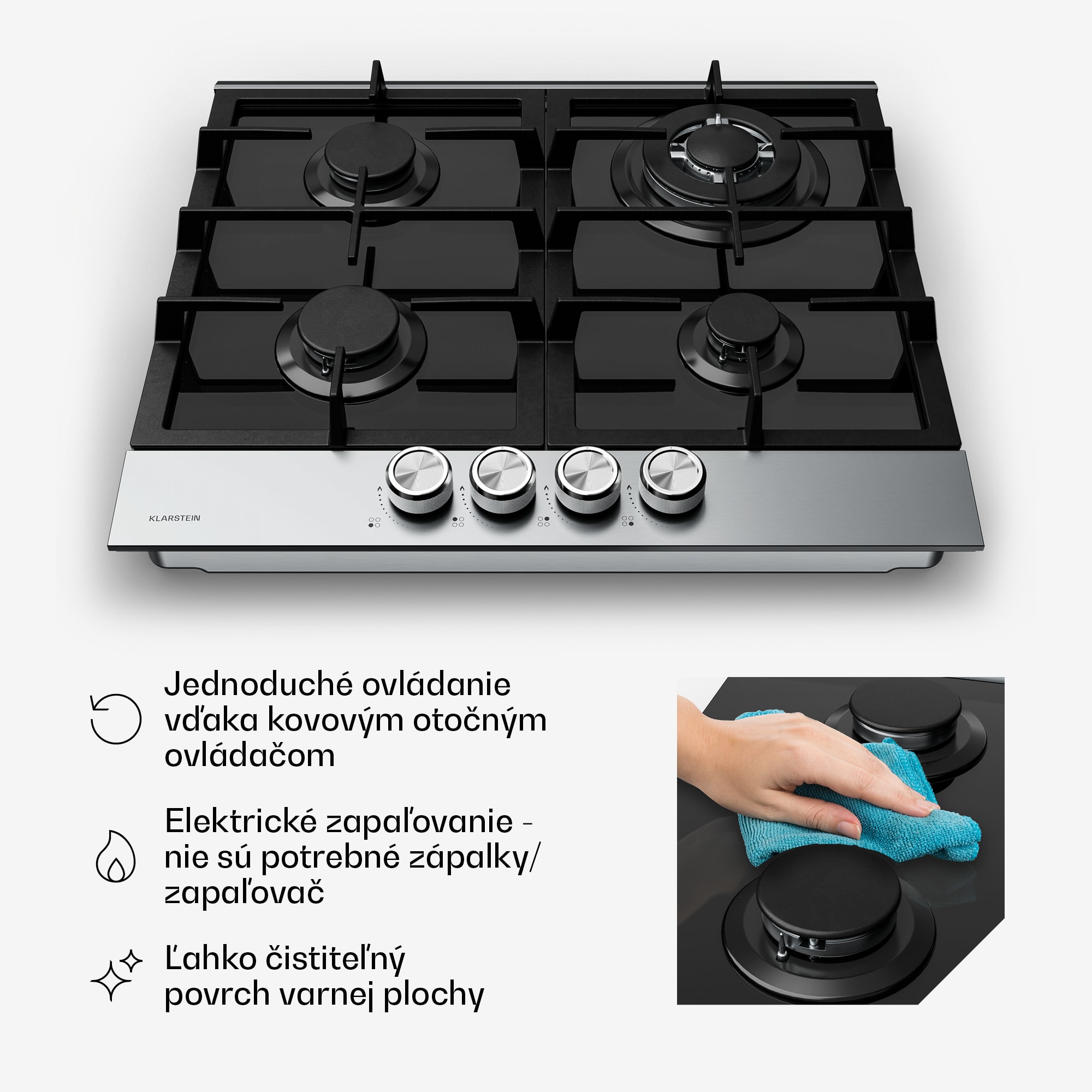 Klarstein Verosteel plynová varná doska + Verosteel komínový digestor | nehrdzavejúca oceľ | 60 cm