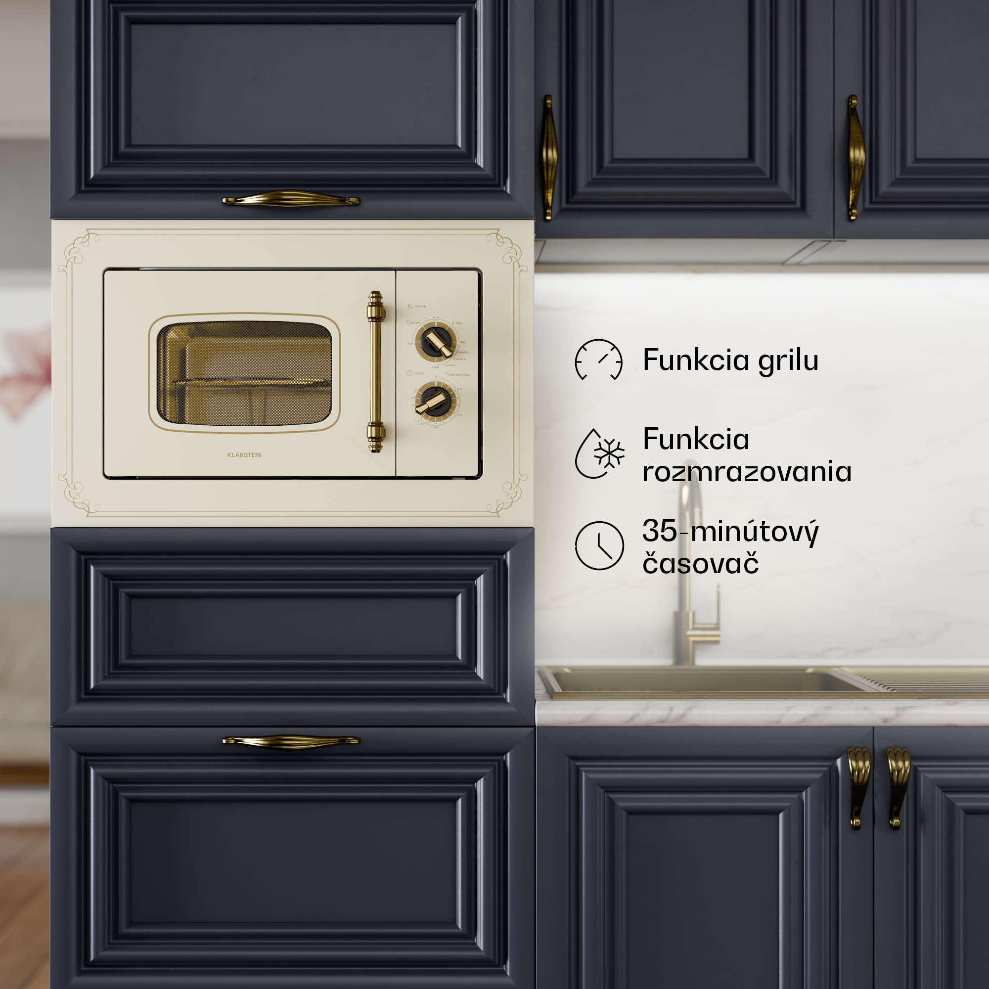 Klarstein Victoria 20, vstavaná mikrovlnná rúra, 20 l, 800 W, gril: 1000 W, slonová kosť