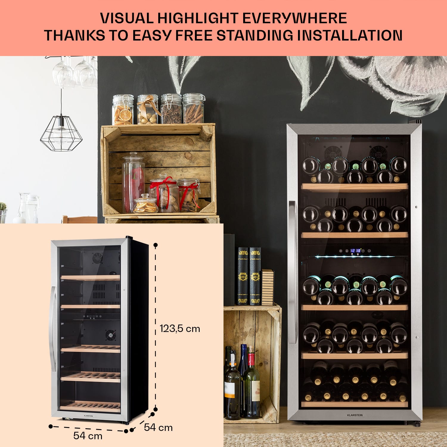 Klarstein Vinamour 66 Duo, vinotéka, 204 l, 79 fliaš, 5-18°C, 2 zóny, dotykové ovládanie