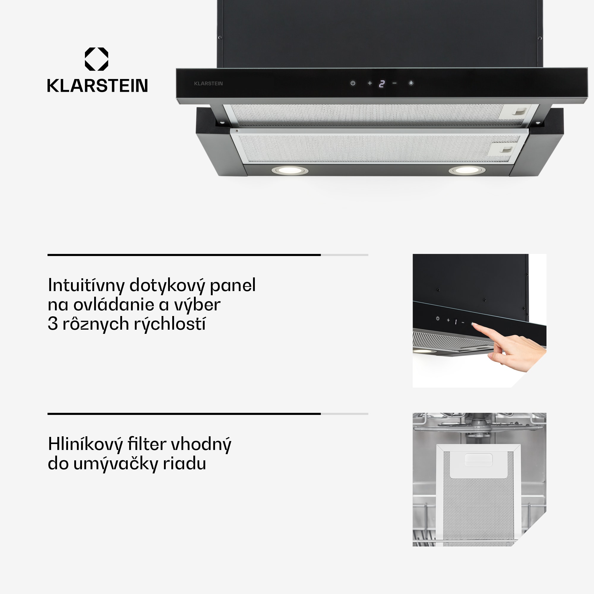 Klarstein Vinea, digestor, 60 cm, vstavaný, 610 m³/h, plochá konštrukcia, čierny