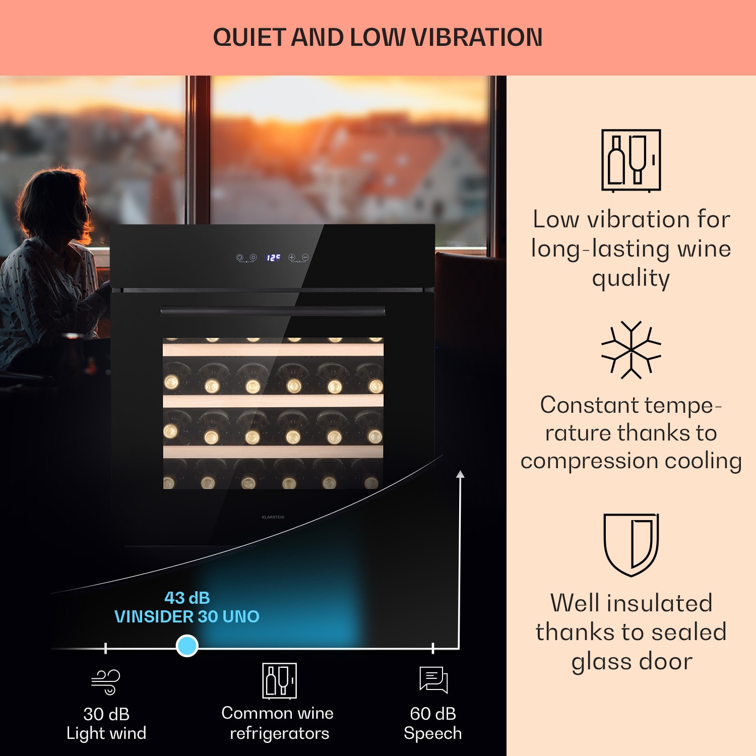 Klarstein Vinsider 30 Built-In Uno, vstavaná vinotéka, 77 l, 30 fliaš, nehrdzavejúca oceľ