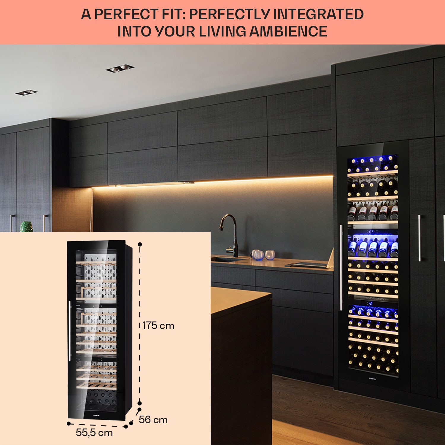 Klarstein Vinsider 89 Trio, vstavaná vinotéka, 5-18°C, dotykový ovládací panel, drevené police