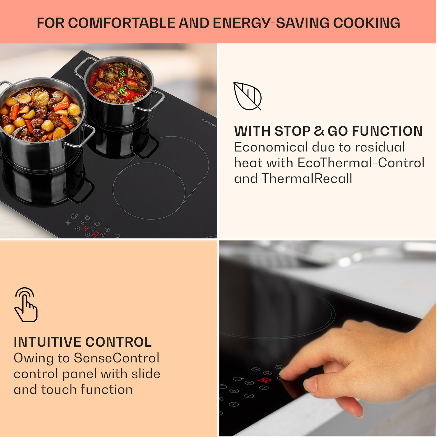Sklokeramická varná doska Virtuosa 5 od Klarstein spája modernú technológiu s luxusným vzhľadom a prináša do vašej kuchynskej linky nový lesk.Môžete tu variť podľa vlastnej chuti. Vstavaná varná doska Virtuosa 5 od Klarstein vám ponúka dve veľké, dve malé a jednu oválnu flexibilnú varnú plochu vario na rýchlu prípravu jedál. Celkový výkon 8500 W privedie obsah hrncov a panvíc do varu. Obzvlášť praktická je oválna flexi zóna a Vario varná plocha, ktorá automaticky rozpozná veľkosť riadu. Sklokeramická rúra Virtuosa 5 od Klarstein sa ovláda pomocou integrovaného dotykového ovládacieho panela, prostredníctvom ktorého môžete nastaviť 9 stupňov výkonu jednotlivých polí a časovač pečenia. Aby všetko pri varení prebiehalo hladko, má vstavaný sporák Klarstein Virtuosa 5 ochranu proti prehriatiu, ukazovateľ zvyškového tepla a detskú poistku, ktorá zabraňuje náhodným zmenám nastavení varenia.Keramická varná doska Victoria 5 od Klarstein vizuálne presvedčí svojím ľahko udržiavateľným a elegantným sklokeramickým povrchom: varná doska sa bez problémov hodí do každej kuchynskej linky – či už klasickej alebo modernej. Materiál potrebný na montáž do pracovnej dosky je zahrnutý priamo v balení.