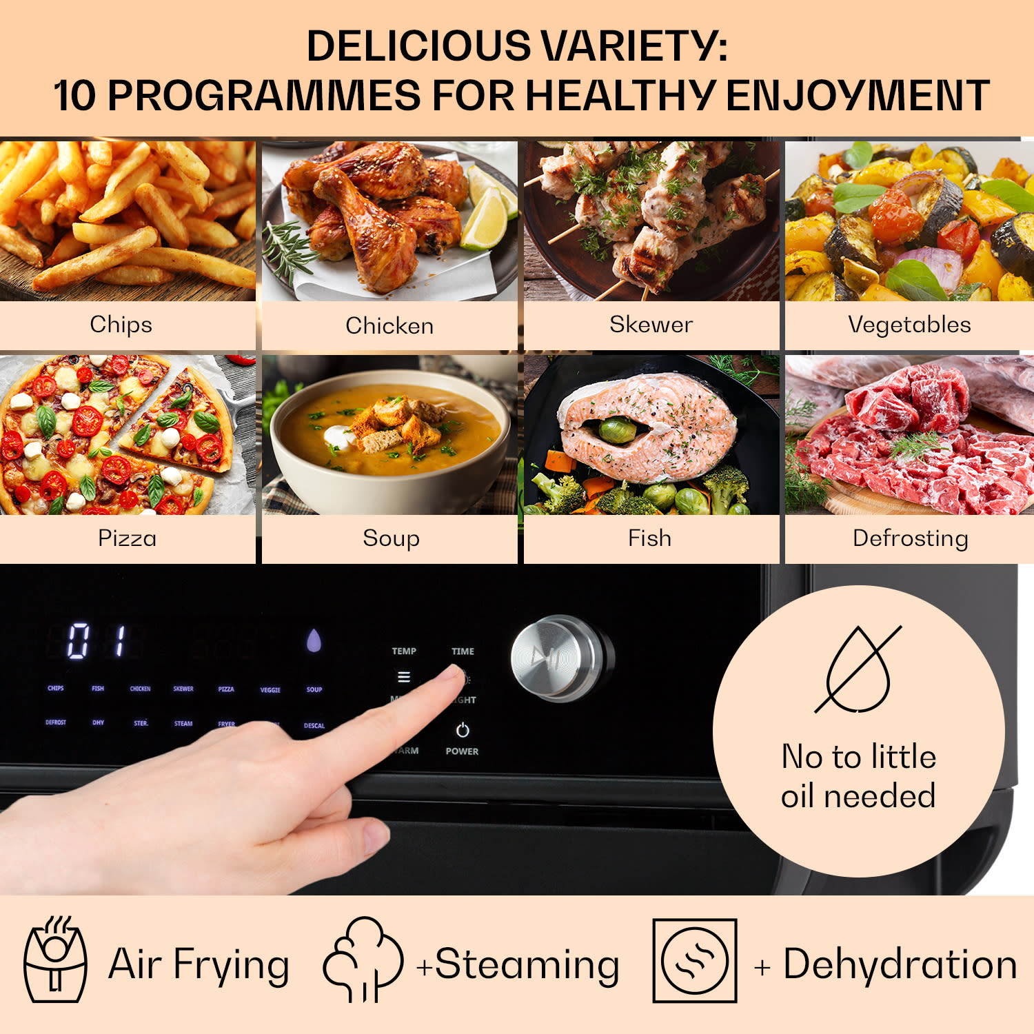 Klarstein Vita Pro, teplovzdušná fritéza s varením v pare, 2450 W, 18 l, 14 programov, 800 ml nádrž na vodu