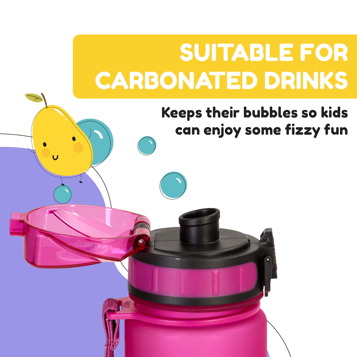 Fľaša na pitie Klarstein Schmatzfatz Wakaba je ideálnym spoločníkom do školy, na šport, výlety aj každodenné dobrodružstvá. Vďaka ľahkému plastovému materiálu nezaťaží batoh ani školskú tašku, no zároveň spoľahlivo udrží váš obľúbený nápoj po ruke. Vďaka nepriepustnému uzáveru sa nemusíte báť, že by niečo vytekalo – či už fľašu vložíte do držiaka na bicykli, do batoha alebo do tašky.Jednou z hlavných predností modelu Wakaba je jeho praktický a športový dizajn. Uzáver so systémom „1 klik“ umožňuje rýchle a jednoduché otváranie jednou rukou, čo oceníte najmä počas pohybu. Bočná šnúrka na prenášanie zas uľahčí manipuláciu – stačí si ju dať okolo zápästia a môžete vyraziť.Fľaša je vyrobená z vysoko kvalitného Tritanu bez obsahu BPA, takže je úplne bezpečná pre každodenné používanie. Bonusom je praktický ovocný nadstavec, vďaka ktorému si môžete vodu osviežiť kúskami ovocia – dužina zostane vo fľaši, no nápoj získa jemnú prírodnú arómu.Wakaba vás presvedčí nielen funkčnosťou, ale aj veselým farebným dizajnom a hravým logom, ktoré si deti zamilujú.