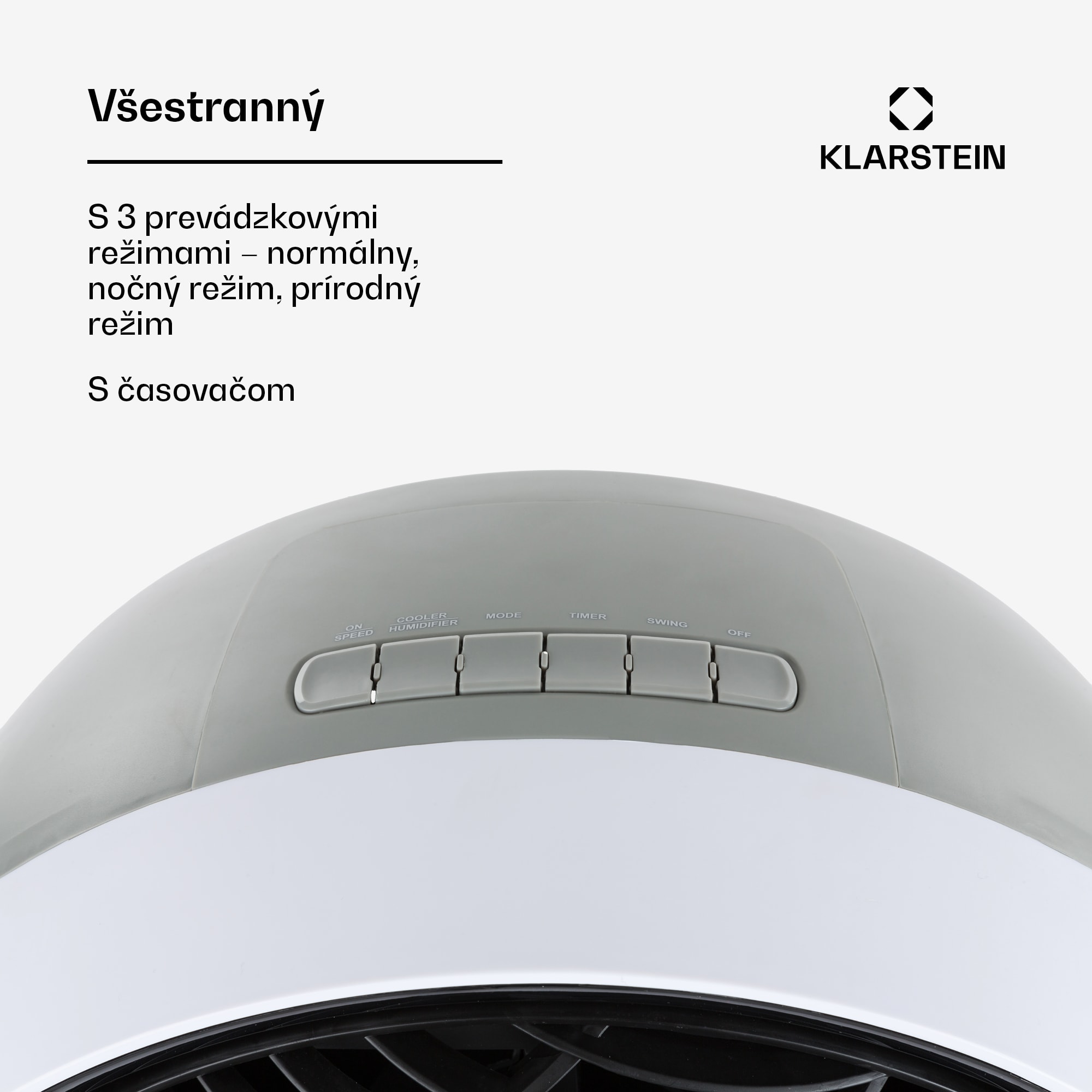 Ako svieži morský vánok: Ochladzovač vzduchu 3 v 1 Klarstein Whirlwind poskytuje čistý, ochladený prúd vzduchu počas horúcich letných dní. Vďaka ventilátoru, ochladzovaču vzduchu i zvlhčovaču vzduchu sa osvieženie zabezpečí s presnosťou na stupeň, či už sedíte za stolom, na pohovke, varíte alebo sa hráte s deťmi. Tri rýchlosti s prietokom vzduchu až do 900 m³ za hodinu rozprúdia lenivý letný vzduch. Prepínateľná oscilácia zaručuje, že prúdenie vzduchu si užijú všetci v miestnosti. Okrem toho má Whirlwind tri rôzne prevádzkové režimy, napríklad prírodný režim, v ktorom sa prúd vzduchu zosilňuje a slabne rovnako ako prirodzený vietor. Pre maximálne osvieženie má Klarstein Whirlwind aj prepínateľný ochladzovač vzduchu, ktorý v zime pôsobí aj proti suchému vykurovanému vzduchu. Pomocou vody z 5,5-litrovej nádrže sa nasávaný vzduch odparovaním ochladzuje a dodatočne zvlhčuje. Prirodzený, úsporný a s praktickou funkciou časovača: svieža atmosféra za každých okolností vďaka ochladzovaču vzduchu 3 v 1 Klarstein Whirlwind .