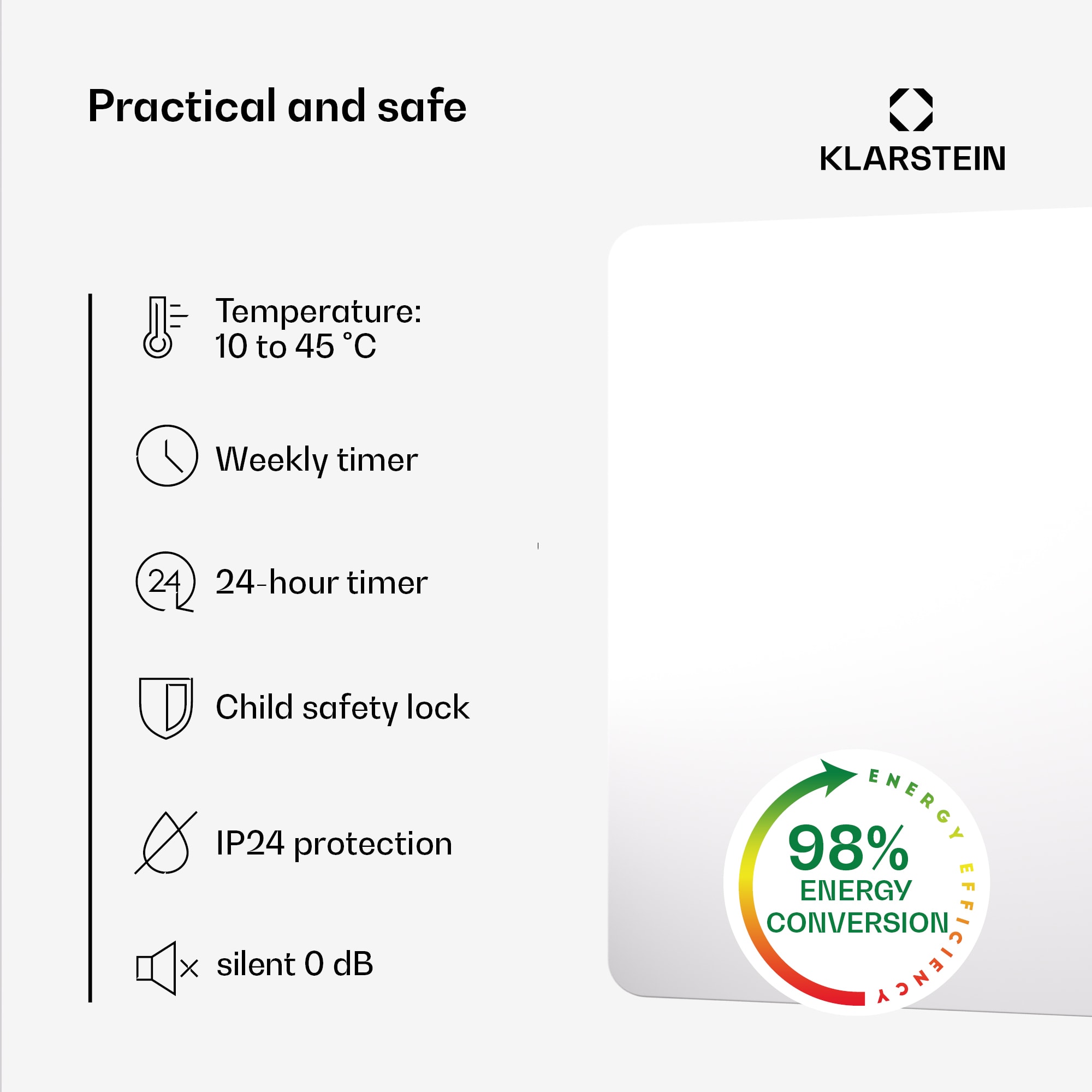 Najnovšia technológia pre príjemné teplo: Infračervený ohrievač Klarstein Wonderbeam 650 prináša príjemné teplo do každej miestnosti vysoko efektívnym a priestorovo úsporným spôsobom. Infračervený ohrievač Wonderbeam prináša revolúciu vo vykurovaní pomocou moderných technológií. Tento superplochý vyhrievací panel tenký iba 28 mm je možné priamo zavesiť na stenu, kde svoju funkciu plní mimoriadne úsporným spôsobom. Vďaka IR ComfortHeat využíva princíp solárneho tepla: namiesto pomalého ohrevu vzduchu vyžaruje príjemné infračervené tepelné lúče, ktoré priamo cielene ohrievajú ľudí a predmety v dosahu. Váš nový elektrický ohrievač je mimoriadne energeticky účinný: celých 95 % spotrebovanej energie sa premení na tepelné lúče a nedochádza k rozvíreniu prachu ani hluku. Skrytý LED displej umiestnený na boku, je obzvlášť praktický a uľahčuje nastavenie alebo ovládanie všetkých funkcií. Inteligentný vykurovací systém môžete obsluhovať aj pomocou diaľkového ovládania. Tento Infrapanel je ideálnym riešením pre moderné vykurovanie.