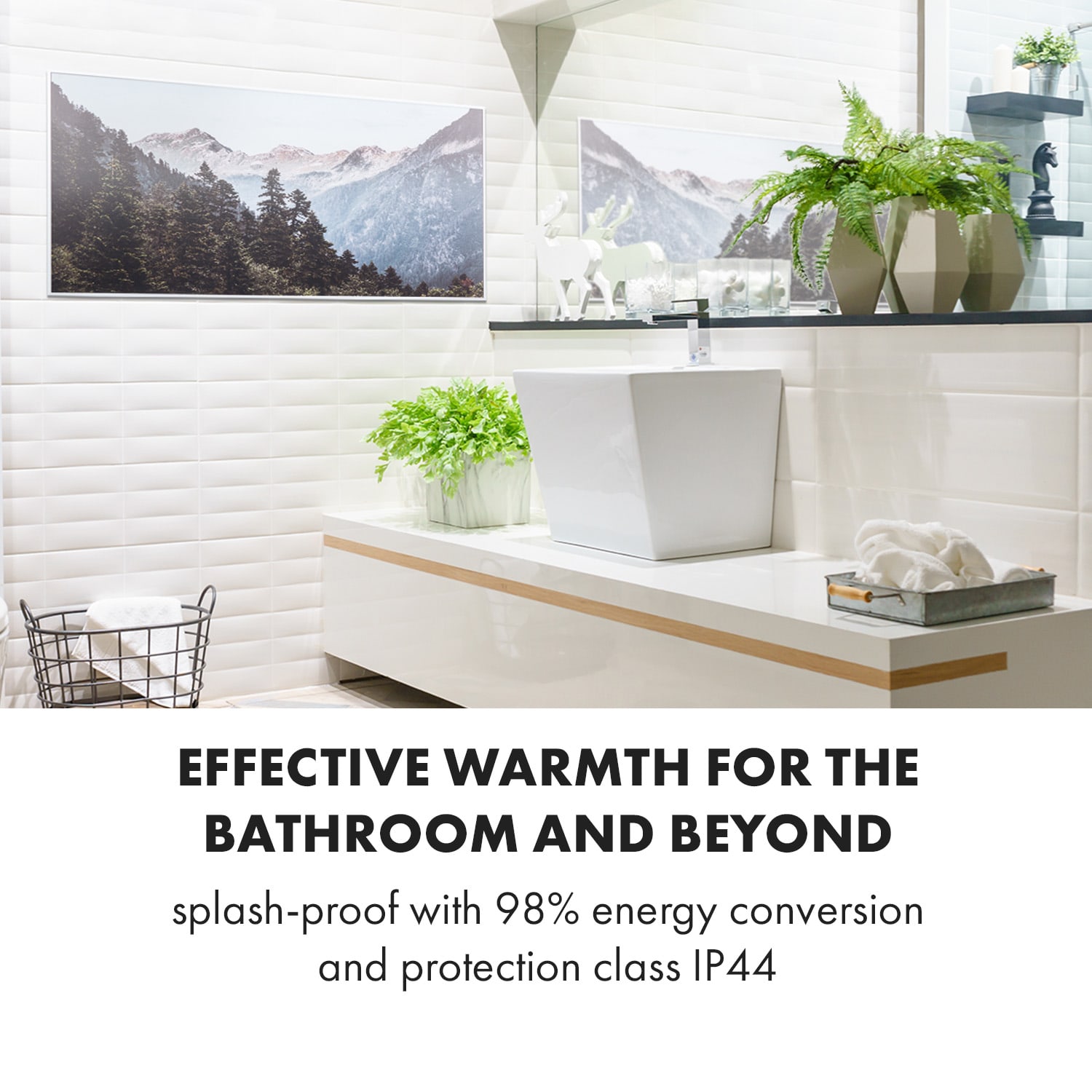 Infračervený ohrievač Klarstein Wonderwall Air Art Smart kombinuje vysoko účinný vyhrievací výkon s atraktívnym dizajnom a najnovšou technológiou. Vyhrievací panel s rozmermi 120 x 60 cm možno zavesiť priamo na stenu a je sotva väčší ako zarámovaný obraz. Tento Infrapanel obraz s výkonom 700 W a vďaka IR ComfortHeat šíri pre ľudskú pokožku veľmi príjemné teplo bez toho, aby sa strácalo vo vzduchu. Vďaka infračervenej technológii je vyhrievací panel mimoriadne energeticky účinný a šetrný k životnému prostrediu, pretože celých 98 % energie sa premieňa na sálavé teplo. Inteligentné funkcie na ovládanie cez aplikáciu, termostat, funkcia automatického vypnutia a stupeň krytia IP44 šikovne dopĺňajú úroveň inovácie.Vitajte v budúcnosti vykurovacej techniky: Inovatívny a štýlový infračervený ohrievač Klarstein Wonderwall Air Art Smart.