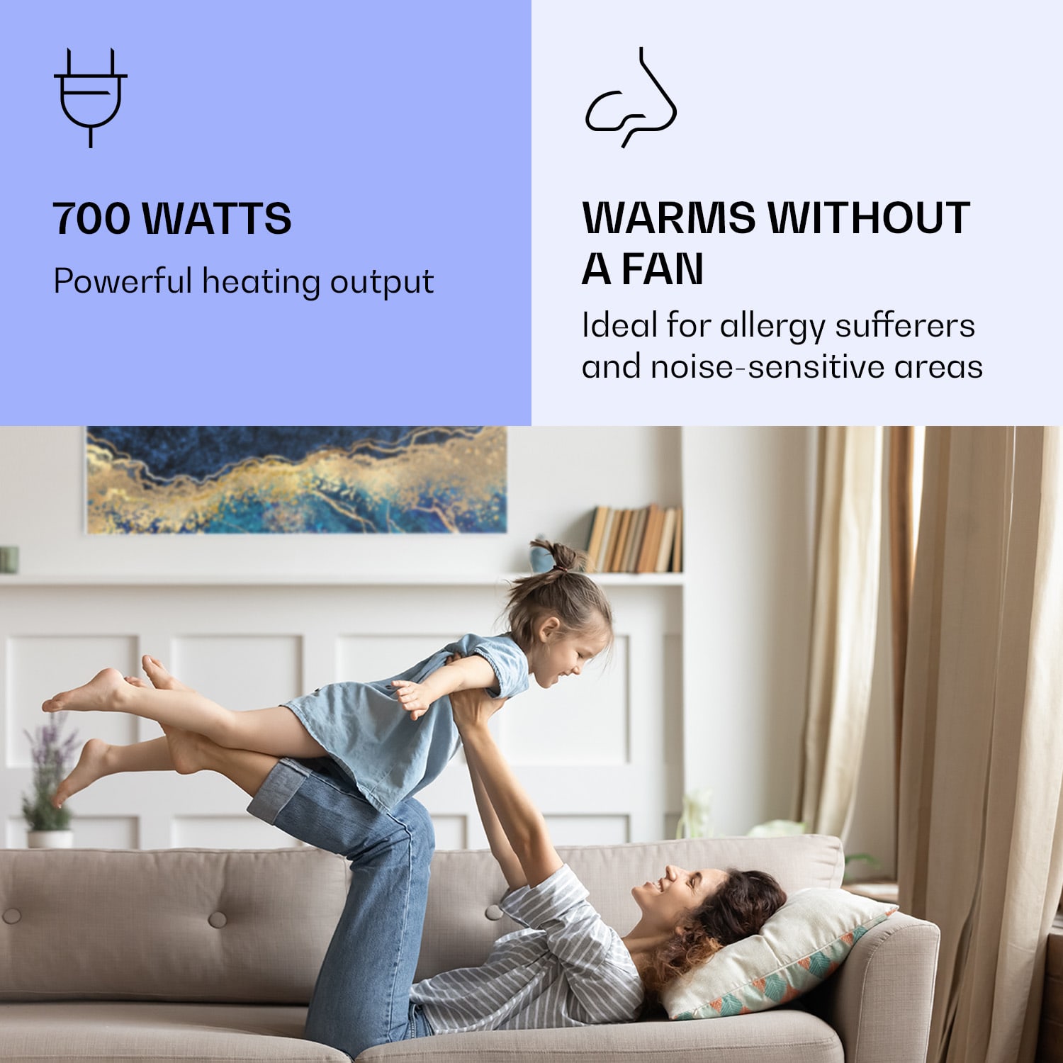 Infračervený ohrievačKlarstein Air Art Smart kombinuje vysoko efektívny vykurovací výkon s pôsobivým dizajnom a najnovšou technológiou. Prináša príjemné teplo a tiež nový lesk a farbu do každej miestnosti a pritom je energeticky veľmi efektívny a ekologický vďaka svojej infračervenej technológii. So svojím silným výkonom 700 W a vďaka technológii IR ComfortHeat šíri k ľudskej pokožke veľmi príjemné teplo, ktoré je vyžarované cielene na osoby v blízkosti ohrievača. Ovládaj veľmi jednoducho pomocou smartfónu, diaľkového ovládača alebo ovládacieho panela jeden ohrievač alebo viacero ohrievacích zariadení. Tento Infrapanel obraz sa dokonale hodí do každého interiéru. Vitaj v budúcnosti vykurovacej techniky: infračervený ohrievačKlarstein Air Art Smart.