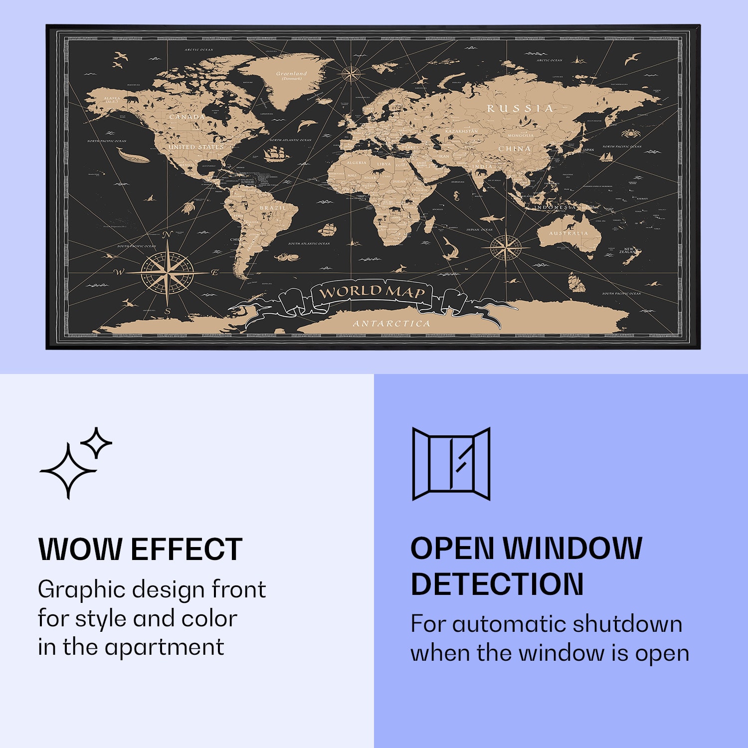 Klarstein Wonderwall Air Art Smart, infračervený ohrievač, 120 x 60 cm, 700 W, nočná mapa
