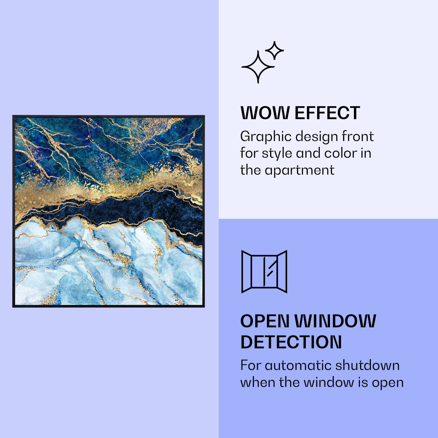 Klarstein Wonderwall Air Art Smart, infračervený ohrievač, 60 x 60 cm, 350 W, modrý mramor