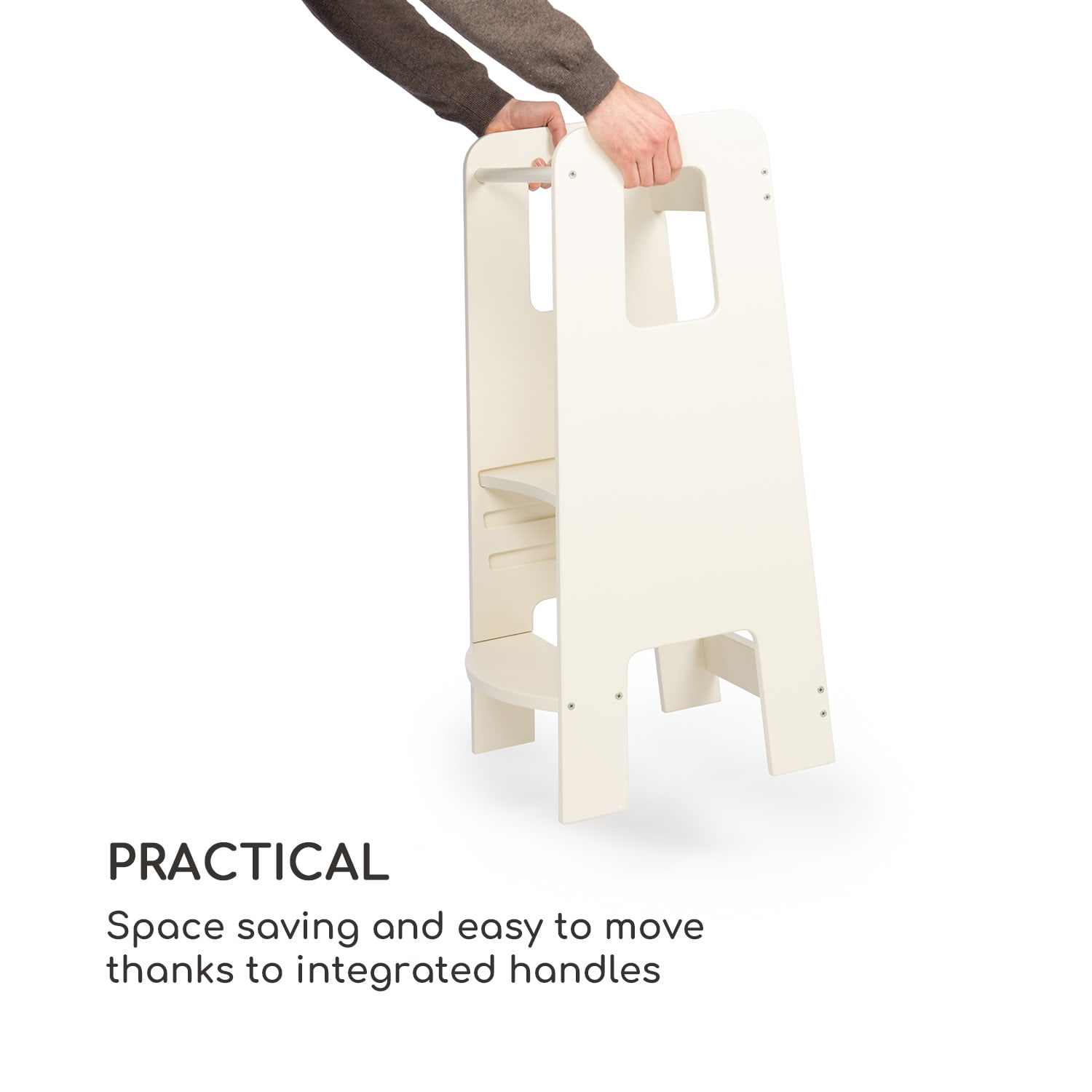 Vysoko hore a uprostred. Učiace veže blumfeldt Ully umožňujú tvojmu dieťaťu zúčastňovať sa mnohých aktivít dospelých už od jeho 12. mesiaca, napríklad v kuchyni pri varení alebo v kúpeľni pri umývaní zubov. Týmto spôsobom sa podporuje učenie samostatnosti v zmysle Montessori pedagogiky.Pomôcka na lezenie blumfeldt Ully je navrhnutá ako drevené schody a pomáha tvojmu dieťaťu dosiahnuť bezpečnú vyvýšenú polohu. Bez pomoci iných môže dieťa dočiahnuť na pracovné dosky, stoly alebo umývadlo v kúpeľni, čím je povzbudzované k samostatnosti. Bezpečnosť a pevné postavenie zabezpečujú rukoväte a zábradlie. Učiace veže sú vyrobené kompletne celé z extrémne stabilného, 13-vrstvového brezového multiplexu. Rohy a hrany sú starostlivo zaoblené. Plochu na státie je možné zasunúť v troch úrovniach – vo výške 28, 34 a 40 cm – a nechať tak lezeckú vežu rásť spolu s tvojím dieťaťom.
