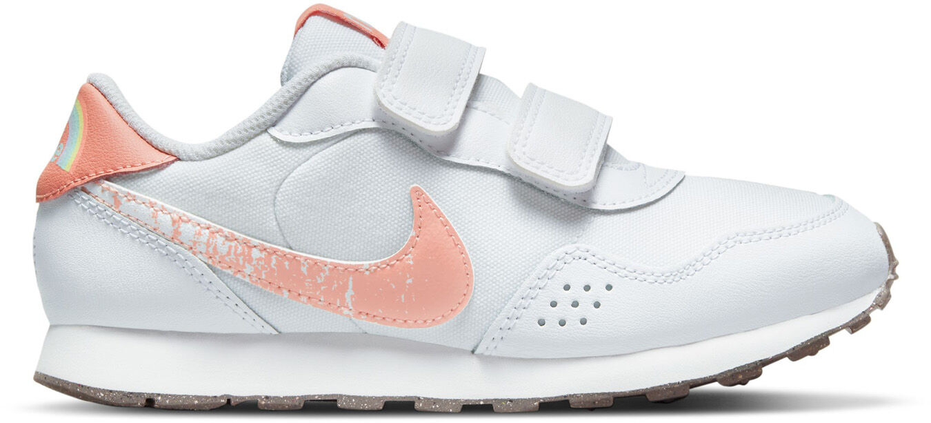 Detská obuv Nike MD Valiant SE Shoes Younger Kids s kriedovým logom a dúhou na zadnej strane. Obuv oslavuje šťastné a nádejné vibrácie, ktoré sa nachádzajú v kriedovom umení na detskom chodníku. So super jednoduchými a nastaviteľnými popruhmi na zapínanie a mäkkým penovým odpružením pod nohami prinášajú tieto každodenné topánky pohodlie pri každom skoku, hre, či voľnom čase.