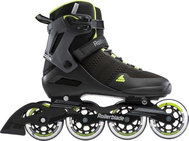 Pánske výkonné kolieskové korčule Rollerblade Spark 90 M. Vyššia konštrukcia manžety so systémom zapínania na pracku, remienok a šnúrky zaisťuje stabilitu a kontrolu, zatiaľ čo polstrovaná vložka zo sieťoviny dodáva priedušnosť. Hliníkový rám dodáva prenos sily a odolnosť. 90 mm výkonné kolieska s ložiskami SG7 poskytujú vyššiu rýchlosť pri zdokonaľovaní schopností. Brzda je štandardná. Spark 90 je pre stredne pokročilých korčuliarov výnimočnou hodnotou.