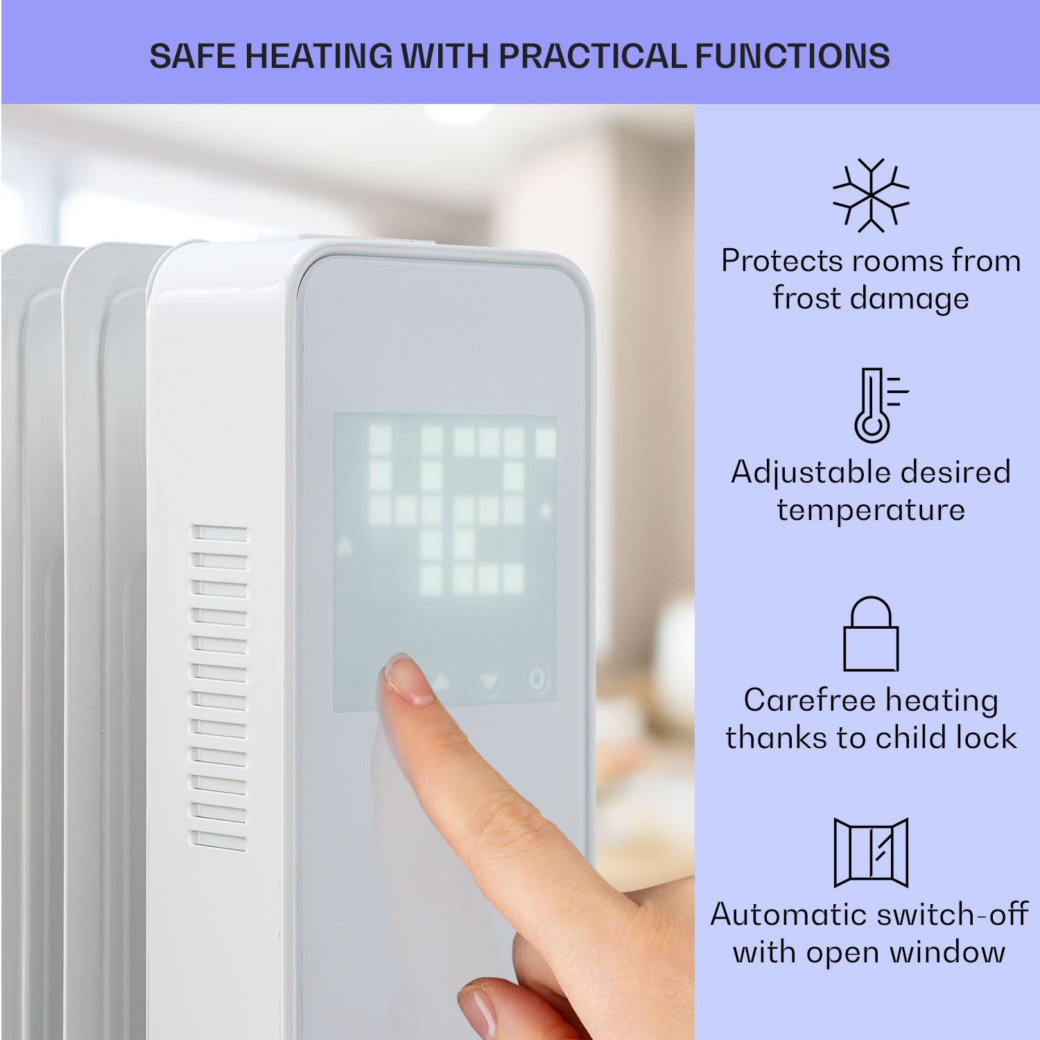 Sanford Smart, olejový radiátor, 2500 W, týždenný časovač, LED displej, dotykový panel, Klarstein aplikácia