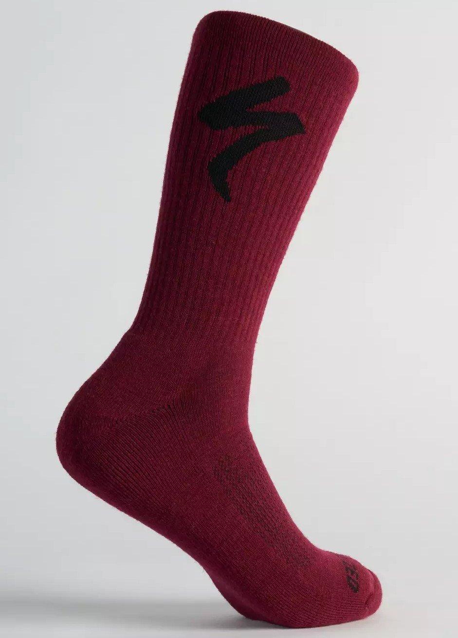 Unisex cyklistické ponožky Specialized Merino Midweight Tall Logo Socks so stredne ťažkou zmesou vlny Merino pre celodenné pohodlie a teplo.