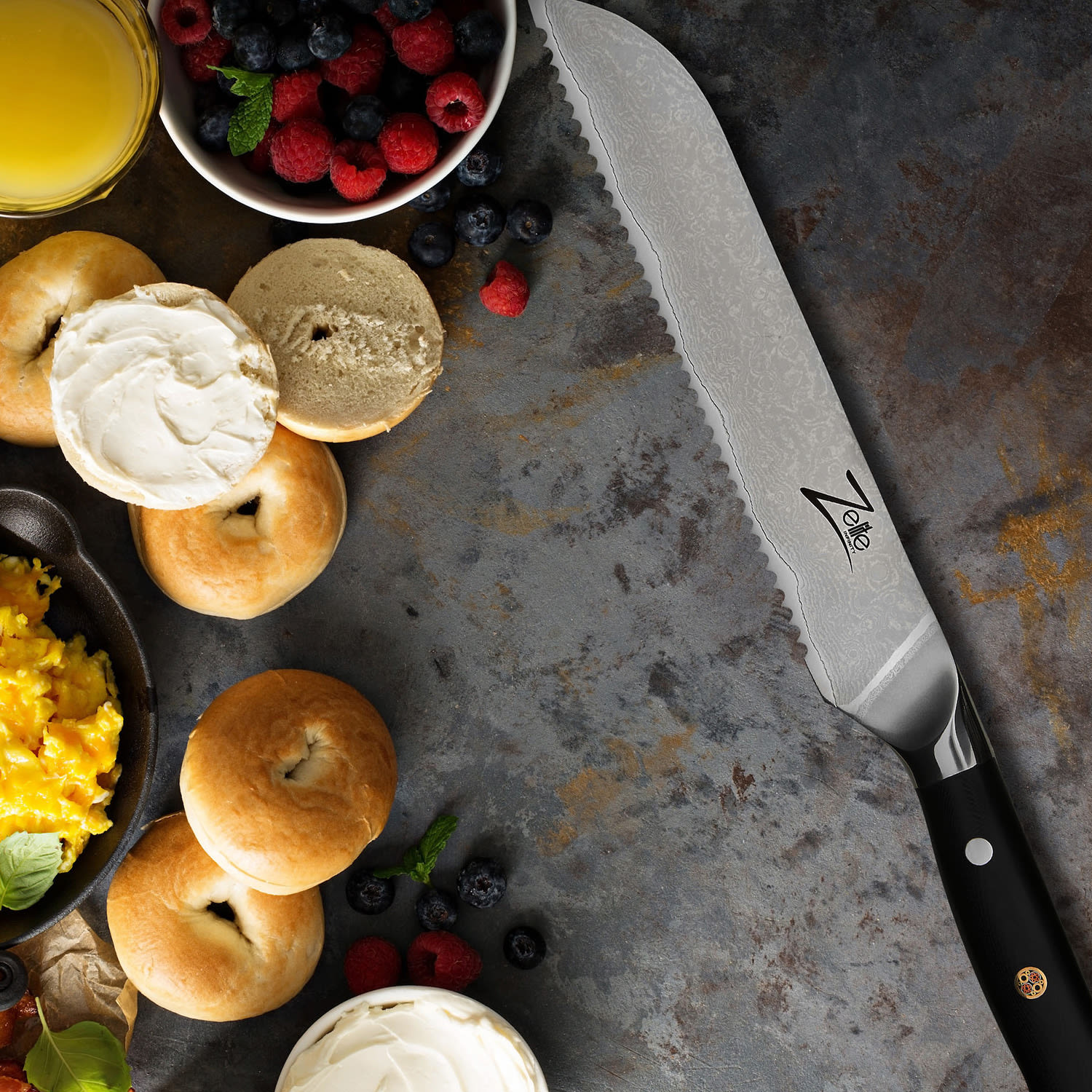 Zelite Infinity by Klarstein Alpha-Royal Japanese Series, 8″ nôž na chlieb, 18° zúbkovaný okraj, damašková oceľ